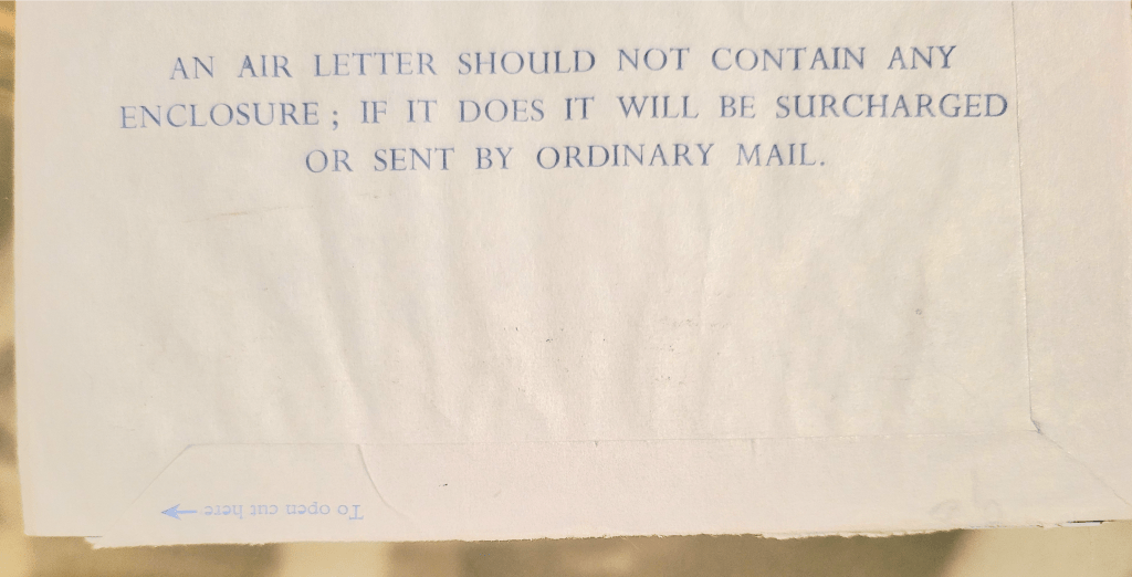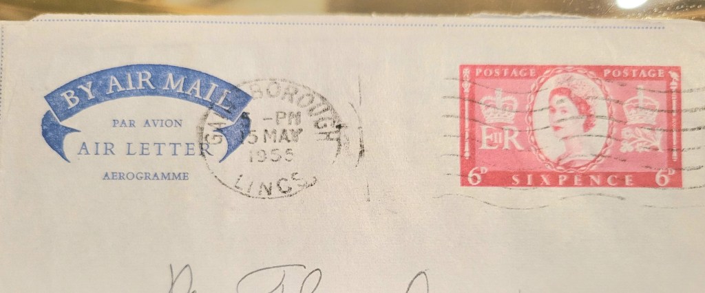 My mom and I have been going through photos and memorabilia. Today I came across some old greeting cards and postcards they had sent to their families. I also found some letters that my dad wrote to my mom while he was doing some work in England. They had been married for 3 years. The letters were put together on fold-up postage paid paper that when folded was also the envelope. They were super sweet as they started with “Dear honey wife”. My dad talked about his adventures and how much he wished my mom was there with him and how much he missed her. My heart swelled as I read the words of my twenty something year old father totally in love with his bride.