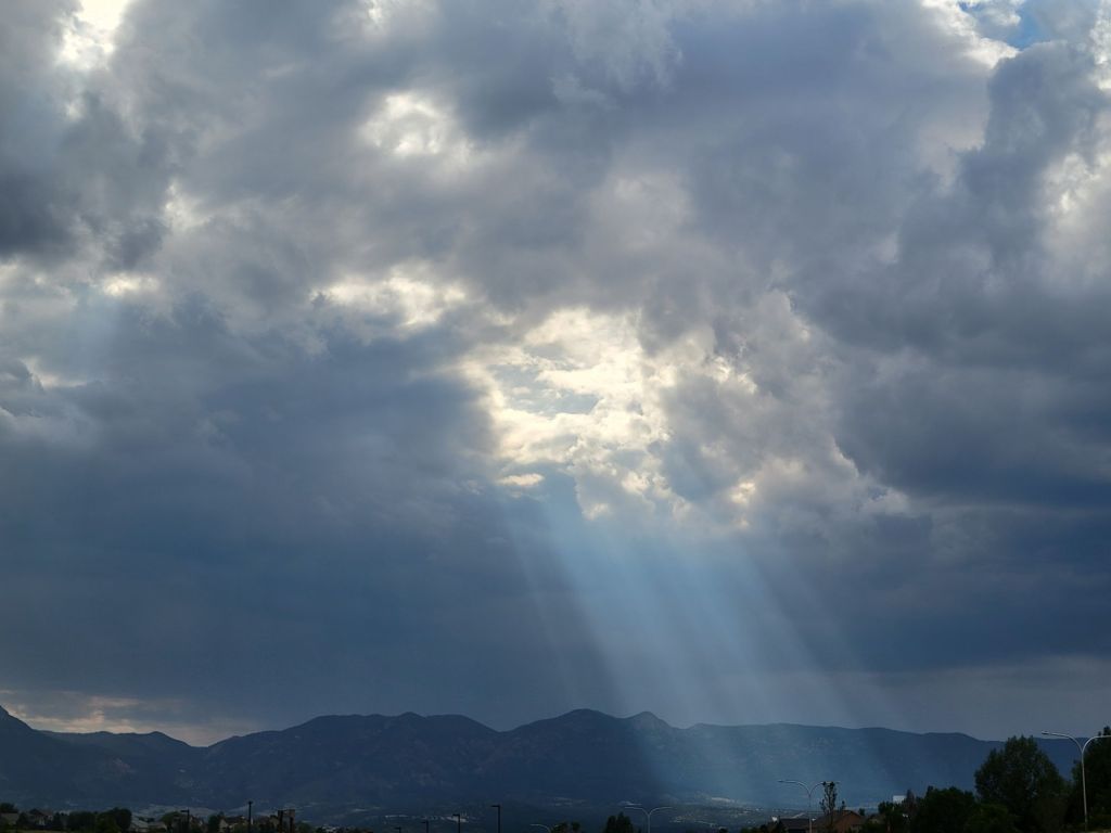 As I was out today, I stopped at the park to take a quick walk. I wasn’t sure how far I would get as the skies looked threatening. But, I managed to make it all the way around which was about a mile. I got back in the car and started it. The radio was set on the Contemporary Christian station as usual. I heard the words, “Remember that God loves you,” and looked up. There was a hole in the clouds and the sunlight was streaming down. To me, it was beautiful and timely.
