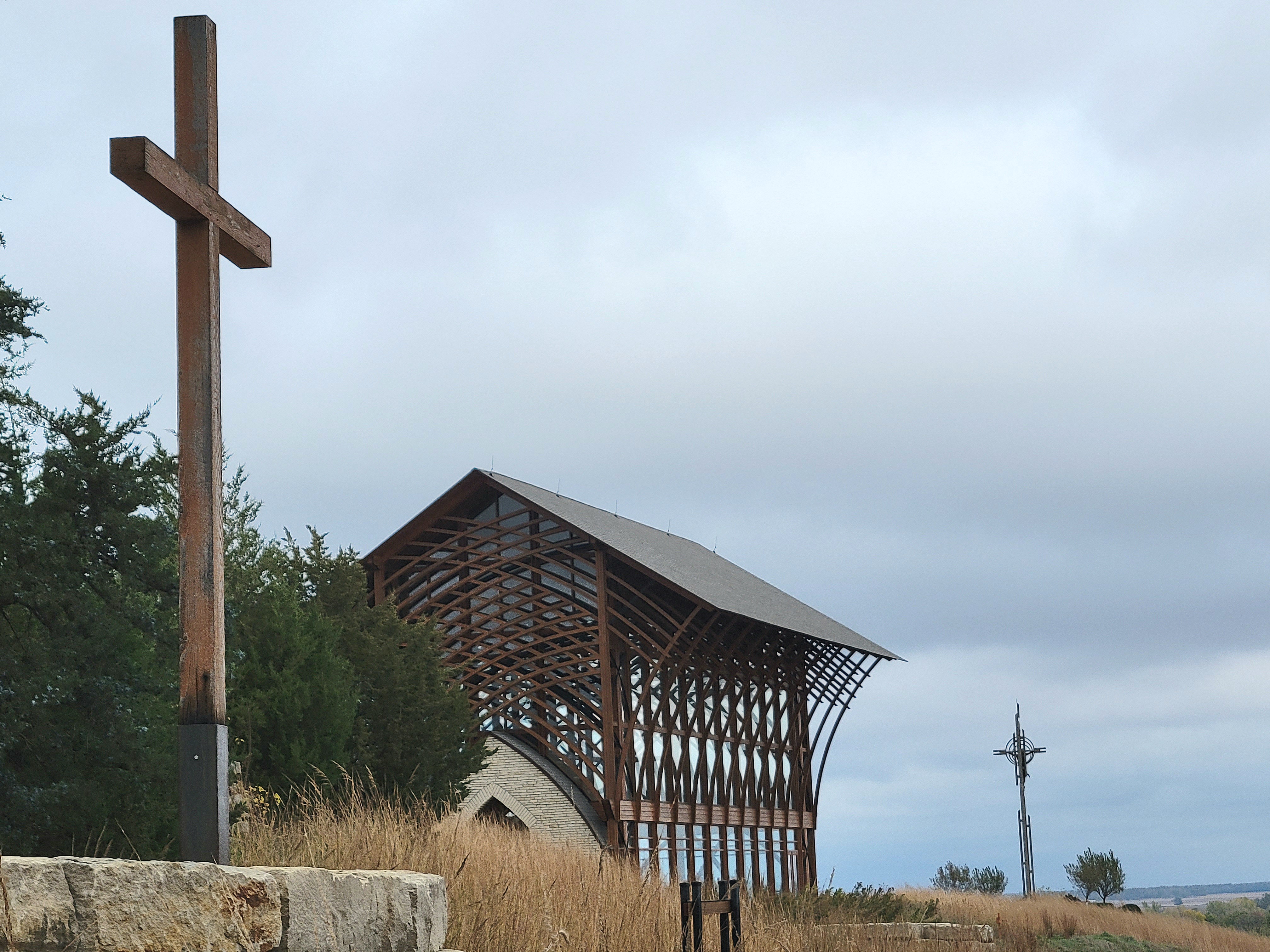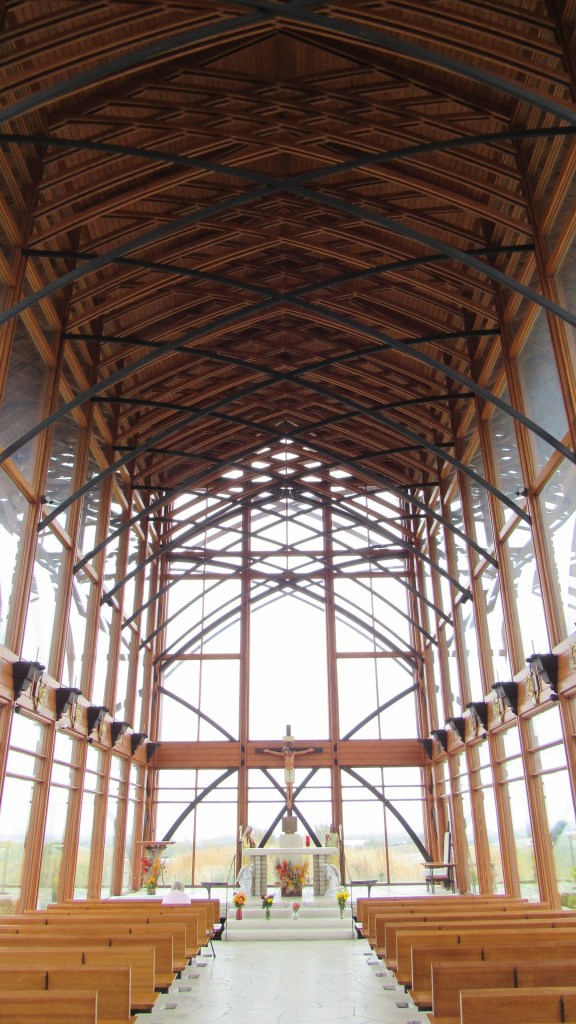 These photos show the inside and outside of the Holy Family Shrine.